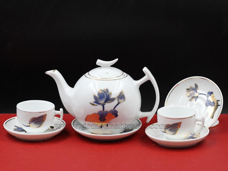 ( Bộ ấm chén trắng Bát Tràng in logo )