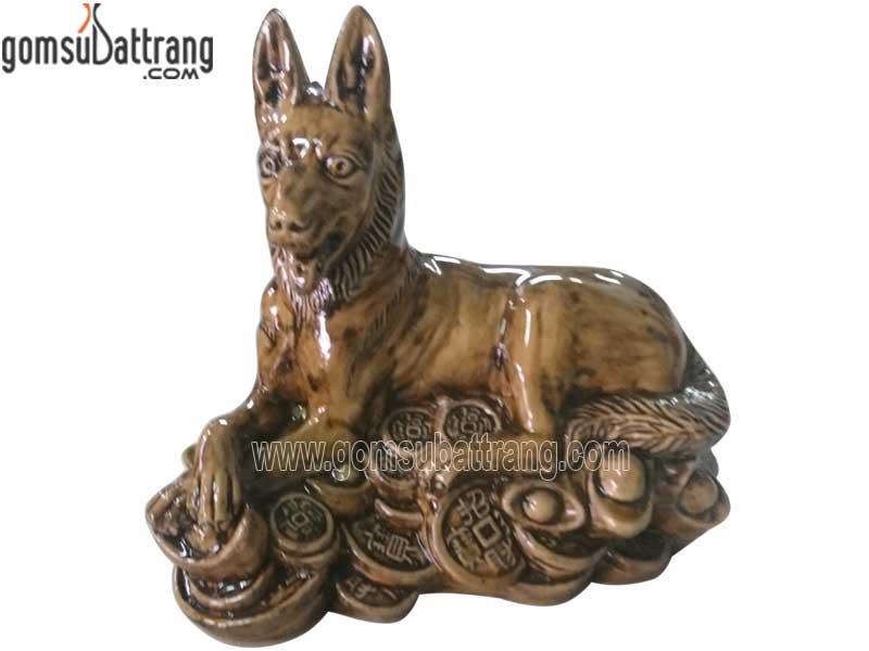 Tượng chó phong thủy số 1 men nâu trơn- hàng nghệ nhân